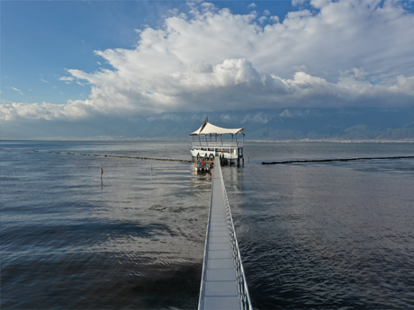 采用高效可調式渦井取藻、藍藻囊團破壁、一體化二級強化氣浮等核心技術,岸上站點藻水分離系統集成了藍藻打撈、脫氣沉降、氣浮分離、脫水等多個環節的技術和設備,形成了可規模化和工廠化處理藍藻的基站。適用于藍藻水華長期規律性、大范圍聚集區域的常態化應急處置。